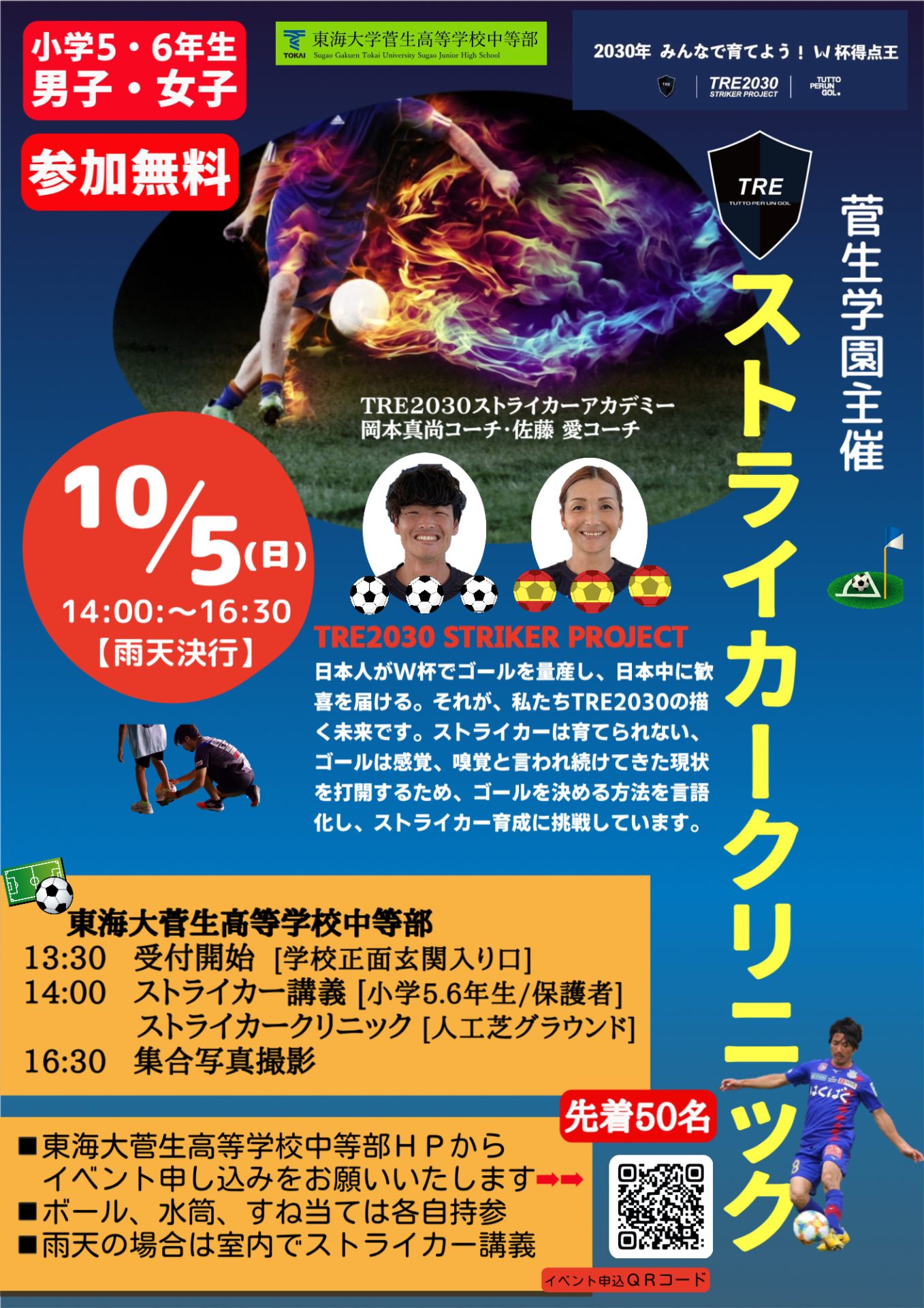 TRE2030は、ストライカー育成に特化した指導を行い、元日本代表の玉田圭司さん、李忠成さんとコラボするなどさまざまなプロジェクトを展開しています。ゴールを決める本当の喜びをこのクリニックで体感してください!